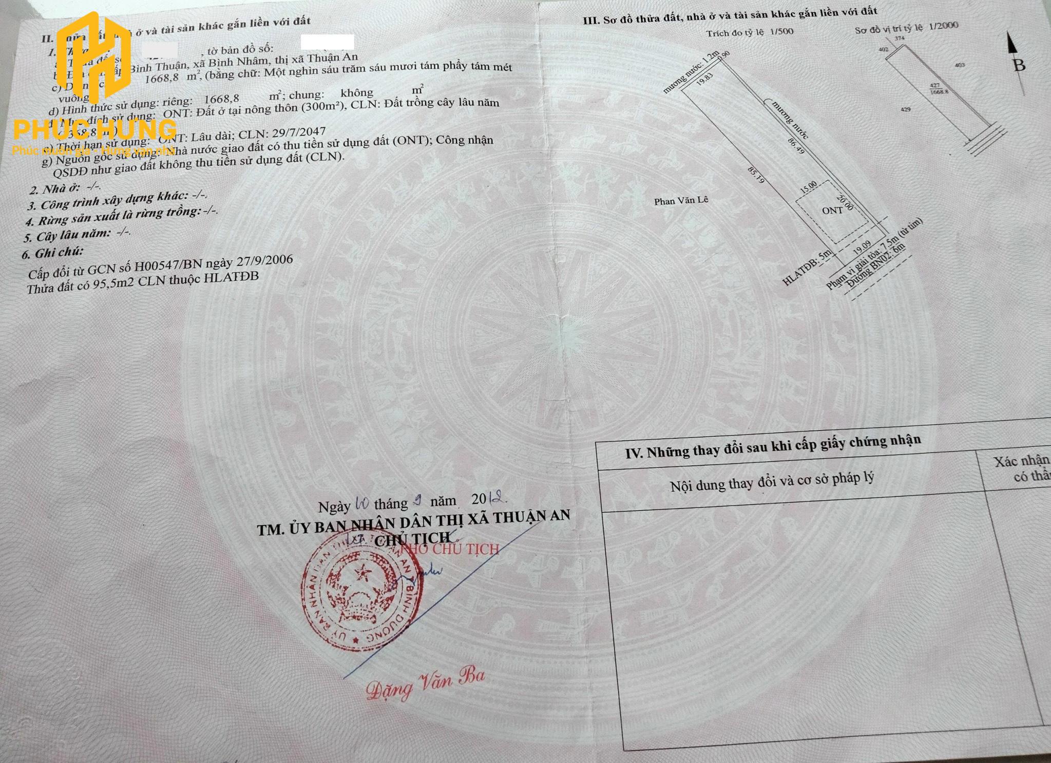 Lô đất mặt tiền đường nhựa Bình Nhâm 02 tọa lạc tại Thuận An, Bình Dương là một lựa chọn tuyệt vời cho những ai đang tìm kiếm một miếng đất đẹp để xây dựng nhà ở, vườn nghỉ dưỡng hoặc kinh doanh. Với diện tích lên đến 1668m2 và giá chỉ 18 triệu đồng/m2, đây là một cơ hội đầu tư rất lớn cho bất kỳ ai muốn sở hữu một thửa đất có vị trí đắc địa này.