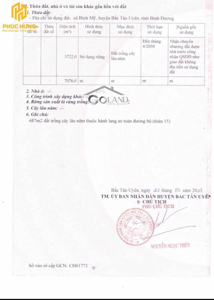 Địa chỉ: Xã Bình Mỹ, Huyện Bắc Tân Uyên, Tỉnh Bình Dương